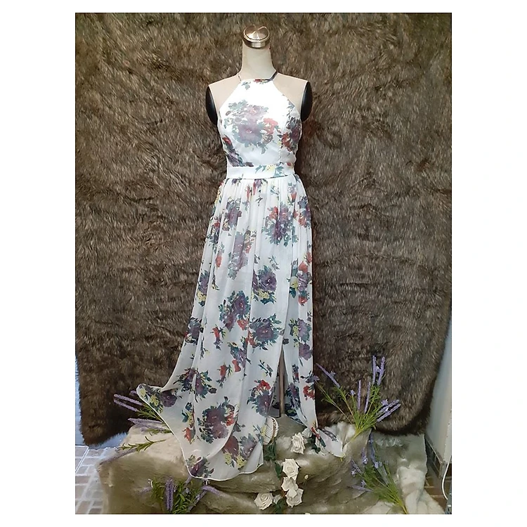 Set Maxi hoa cổ yếm chẻ tà thiết kế sang chảnh
