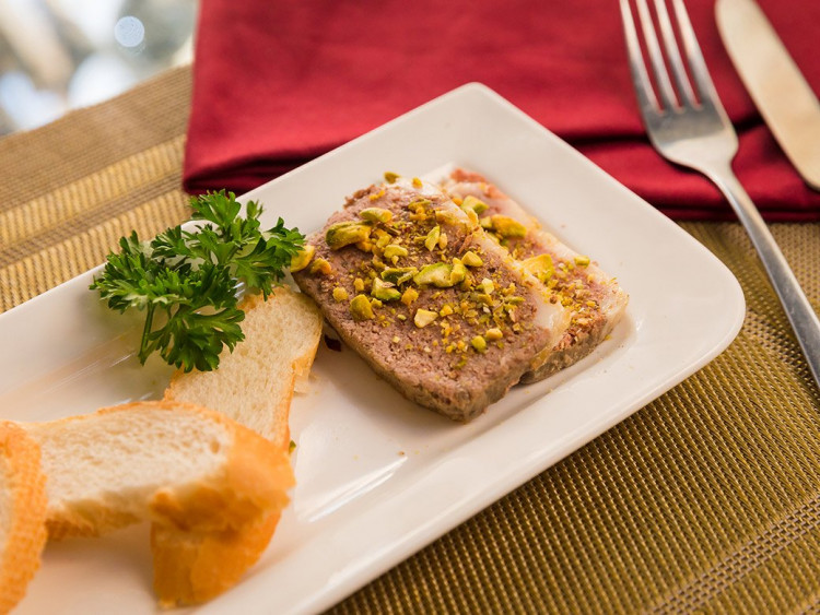 Pate gan ngỗng + bánh mì baguette cắt lát.