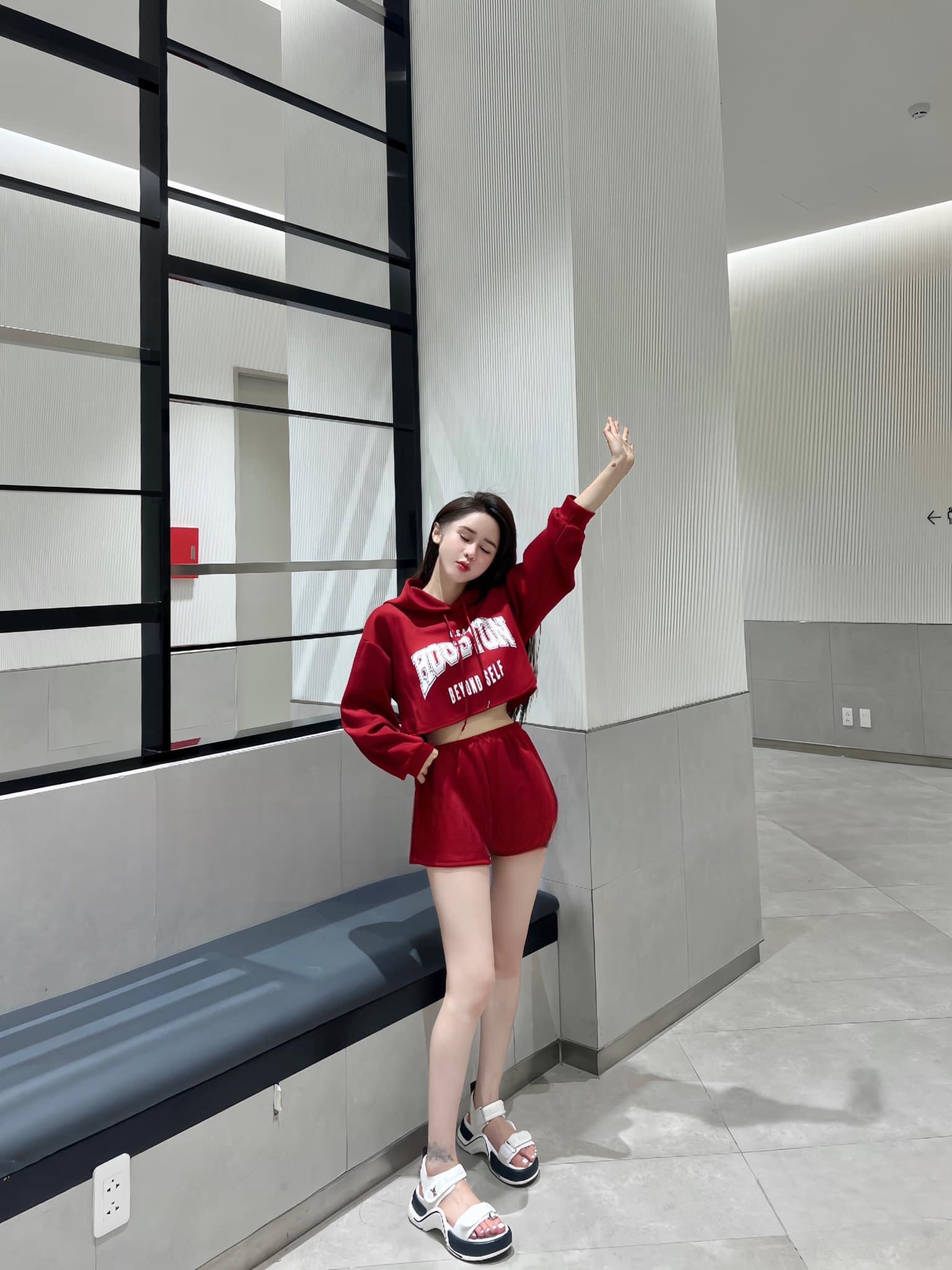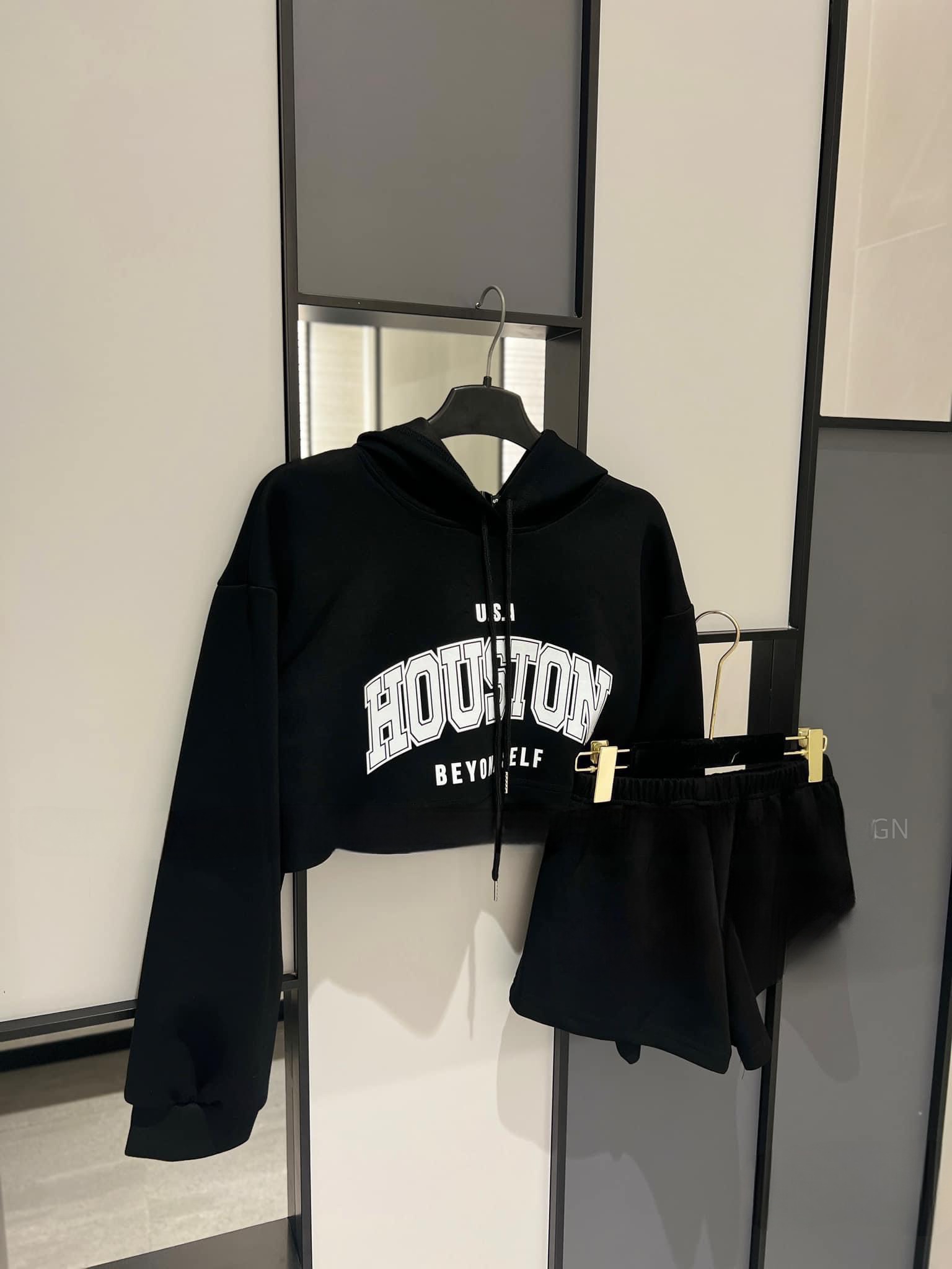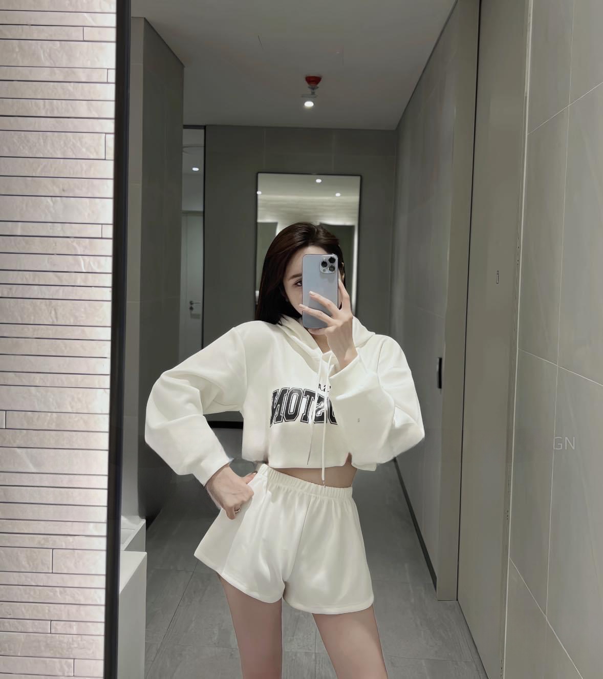 Set nỉ áo croptop có mũ mix quần ngắn ,đồ bộ in chữ,3 màu nổi bật phong cách cute dễ thương,năng động