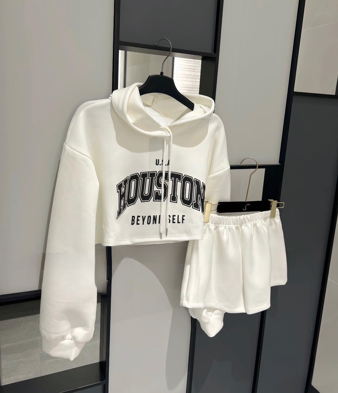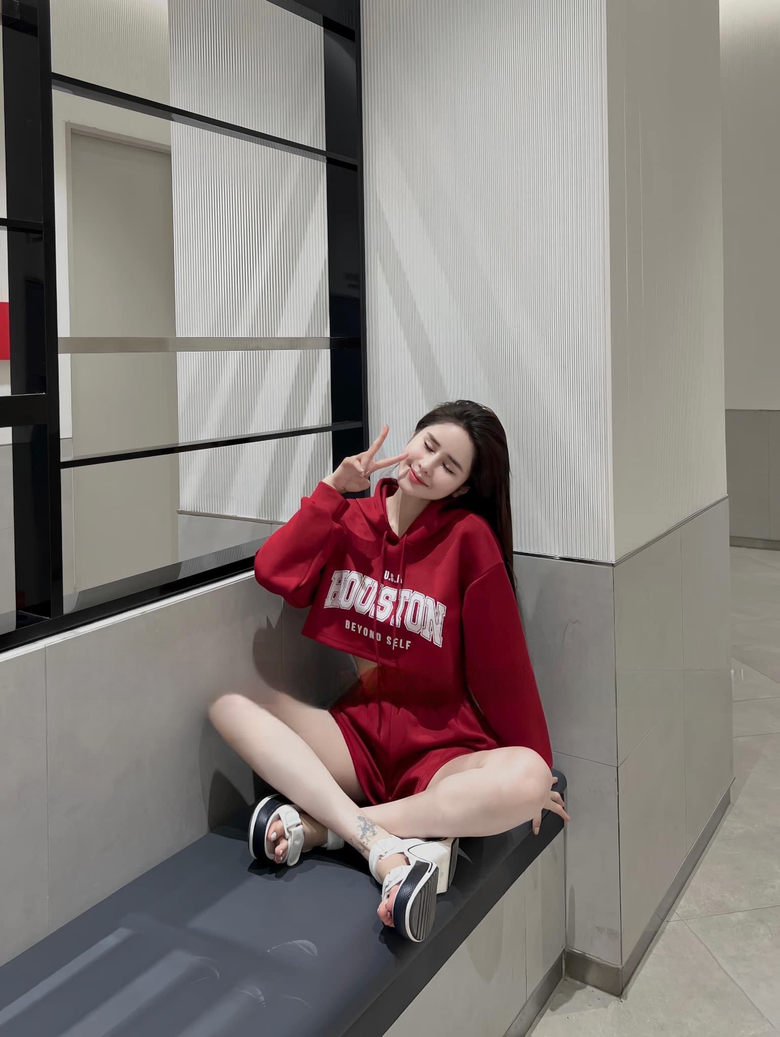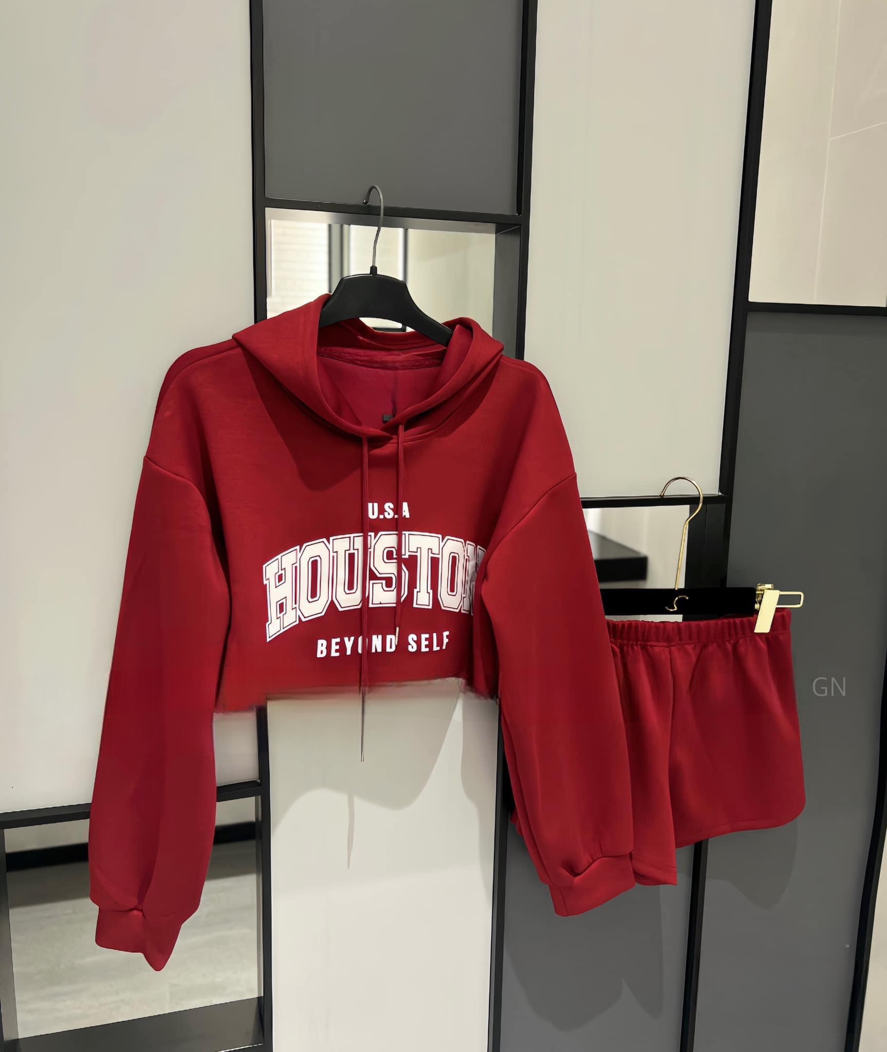 Set nỉ áo croptop có mũ mix quần ngắn ,đồ bộ in chữ,3 màu nổi bật phong cách cute dễ thương,năng động