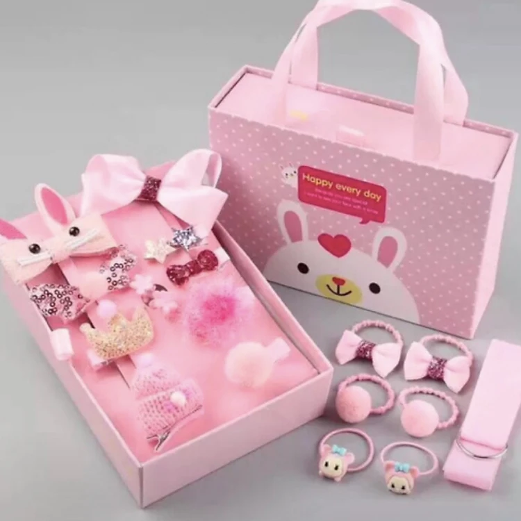 Hộp cứng kiêm túi xách xinh ơi là xinh cho bé gái Full hộp túi như hình tặng thì quá xịn ạ ️Đảm bảo bé nào cũng mê tít với hộp kẹp tóc đủ sắc màu dễ thương kute siêu này lun ️Set gồm dây cột tóc- kẹp tóc mái- kẹp tóc hình nơ to nhỏ nói chung mê tít ko chê đc điểm gì luôn ấy ️Thị trường hiện đang bán rất nhiều loại luôn nhé. Nhưng nhấn mạnh lại của nhà em là loại 18 chi tiết ko fai 10-12 chi tiết đâu