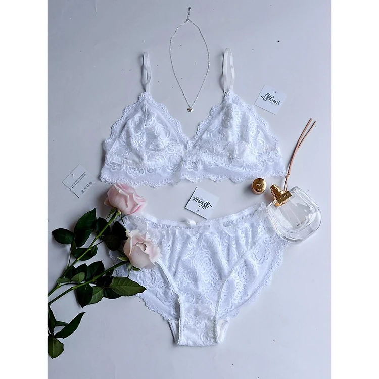 Set được may bằng ren co giãn rất mềm mại, không hề gây ngứa ạ.