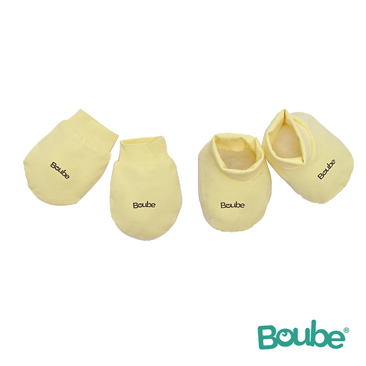 Set phụ kiện nón, bao tay, bao chân màu vàng cho bé sơ sinh Boube, Vải Cotton Organic thoáng mát - Size Newborn
