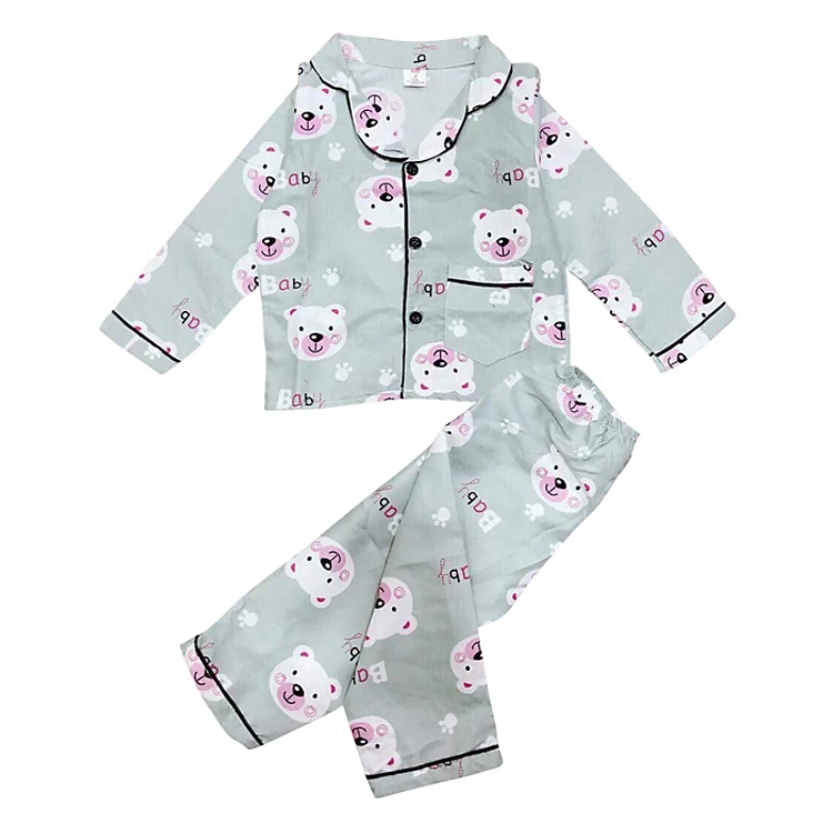 • Set Pijama Dài Tay Cho Bé - Hình Gấu Xám chất vải kate thái mềm mịn, form dáng thoải mái cho bé mặc ngủ tránh gió tránh muỗi.