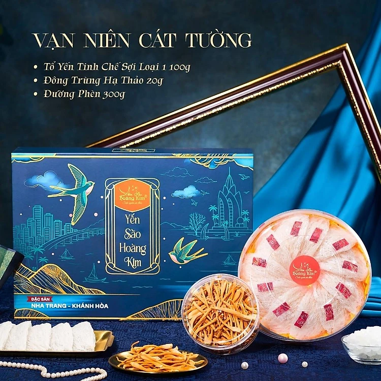 Set Quà Tặng Sức Khỏe Vạn Niên Cát Tường Hoàng Kim (100g Yến Tinh Chế 1 và ĐTHT) Quà Mừng Thọ, Bồi Bổ Sức Khỏe Người Già