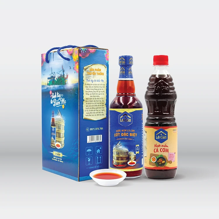 Set quà Tinh Túy 3 ( 1 chai mắm cốt đặc biệt 40N+ 1 chai nước mắm cá cơm 650ml)