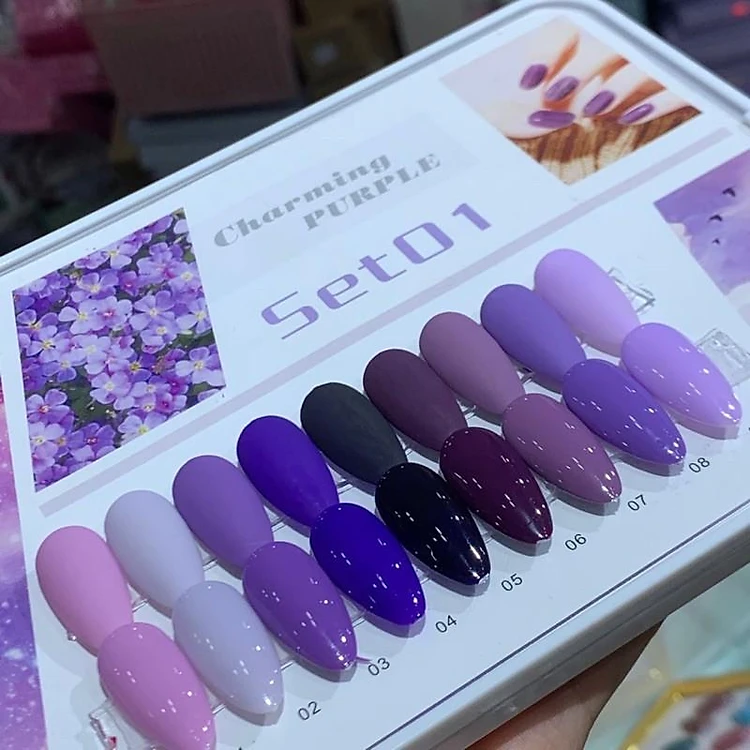 Sét sơn 9 chai gồm các tông màu tím khác nhau