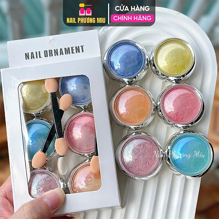 Set Tráng Gương Ánh Ngọc Trai 6 Hũ Nhiều Màu Dạ Quang Dạng Bột Chuyên Dùng Trang Trí Móng - Nail Phương Miu
