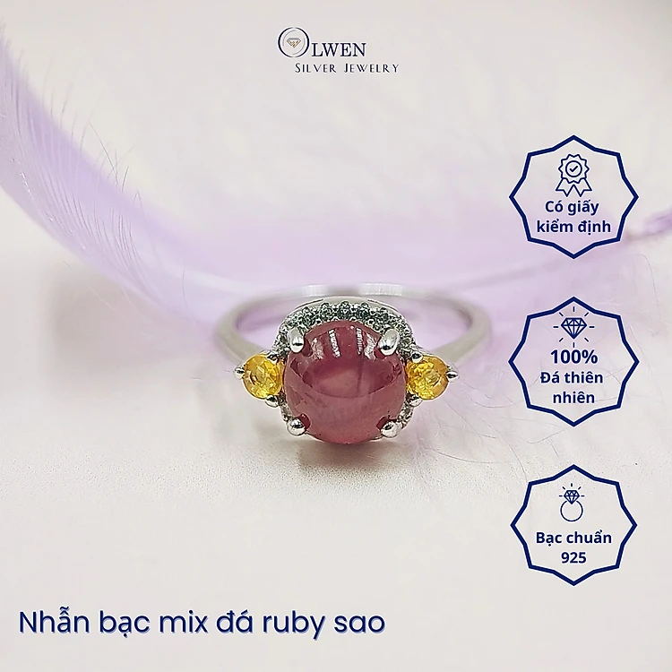 Set Trang Sức Bạc 925 Olwen Đính Đá Phong Thủy Ruby, Sapphire Sao