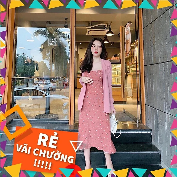 Set Váy 2 Dây Mix Cardigan Set Áo Khoác Phối Váy 2 Dây Dịu Dàng