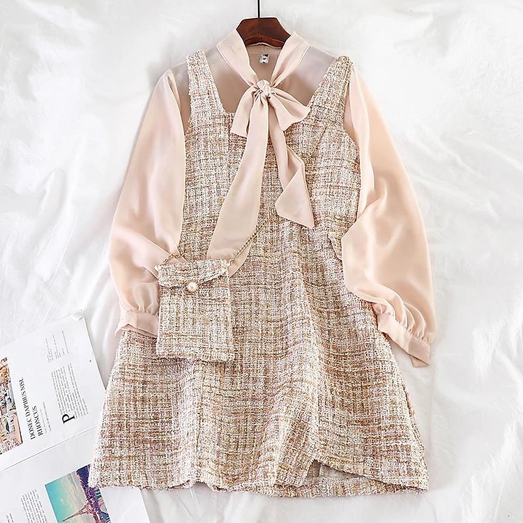 Set Váy Áo Tiếu Thư Dễ Thương Dáng Suông Phong Cách Hàn Quốc KR1917 Kèm 01 túi nhỏ xinh xắn gồm