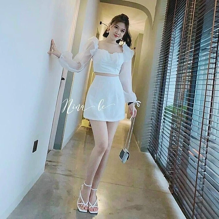Set váy dễ thương áo kèm chân váy hai màu trắng và đen