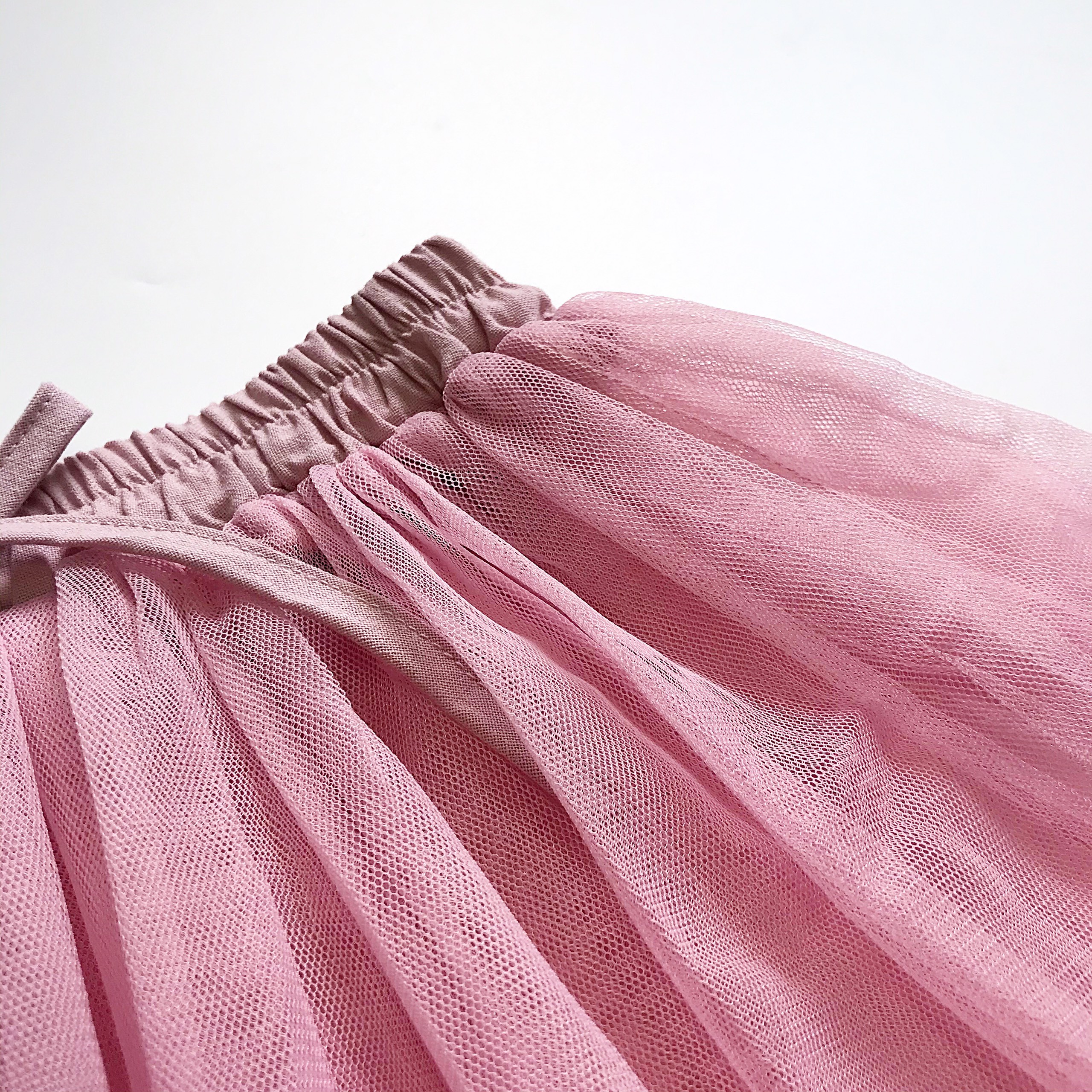 Set váy mẹ bé màu hồng sát nách cài khuy giữa + chân váy lưới