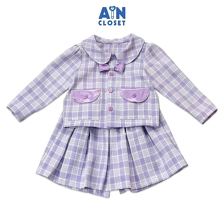 Set vest phối chân váy bé gái họa tiết Caro Tím tuytsi - AICDBGBJTUZI - AIN Closet