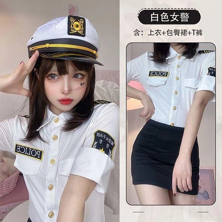 Sexy nữ cảnh sát đồng phục hai mảnh cosplay tiếp viên hàng không huấn luyện viên thư ký đồng phục quyến rũ mông váy ngắn trang phục nữ