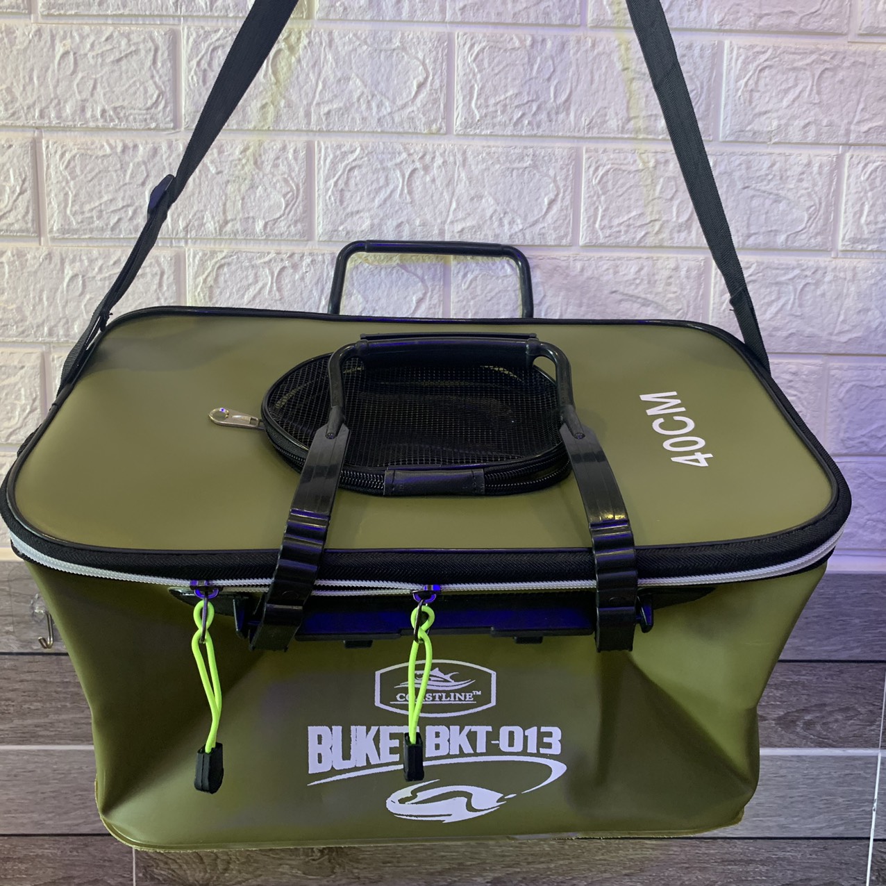 Thùng đựng cá lóc được làm bằng nhựa dẻo cao cấp nên rất bền và có thể xếp gọn lại khi mang đi câu.