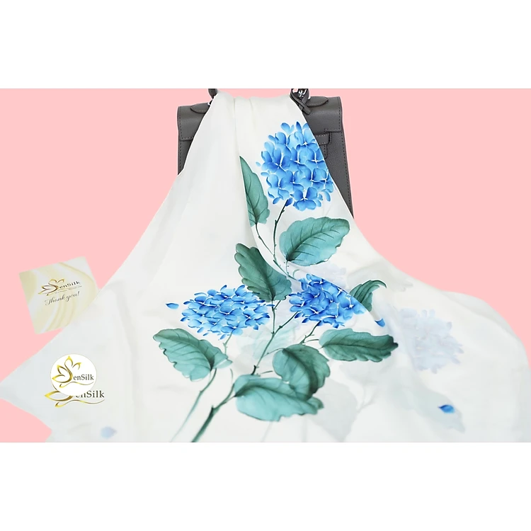 Silk Hand Painted 100% Pure Silk - Khăn Lụa Cao Cấp Vẽ Tay Cẩm Tú Cầu - Quà Tặng Khăn Lụa