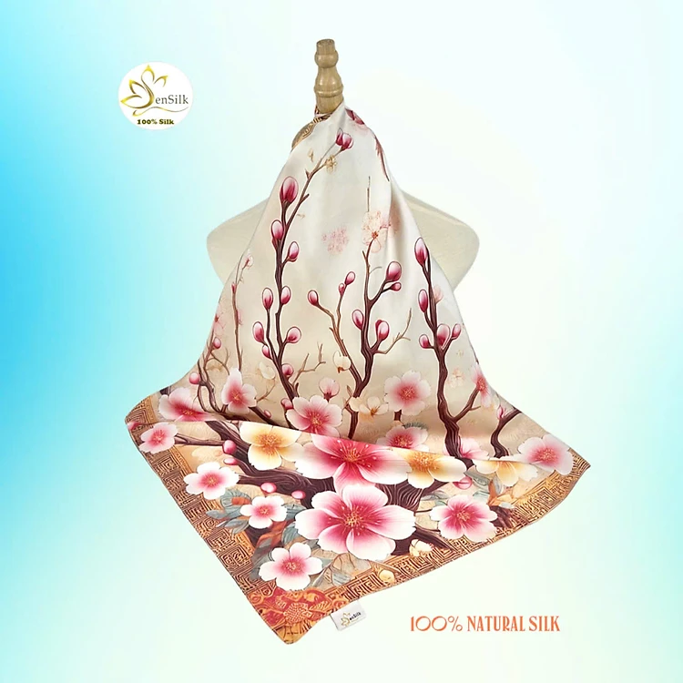 Silk Printed Square Scarves - Khăn in Lụa Cao Cấp SenSilk - Quà Tặng Khăn Lụa Đẳng Cấp Việt Nam - Họa Tiết Hoa Đào