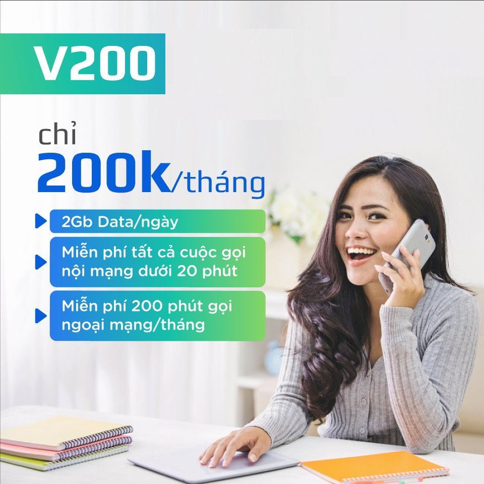 Sim 4G Viettel V200 miễn phí 20 phút gọi đầu tiên/cuộc gọi + miễn phí 200 phút gọi ngoại mạng + 2GB/ngày.