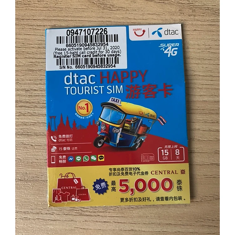 - Sim của mang Dtac - Mạng phủ sóng 4G lớn nhất Thái Lan