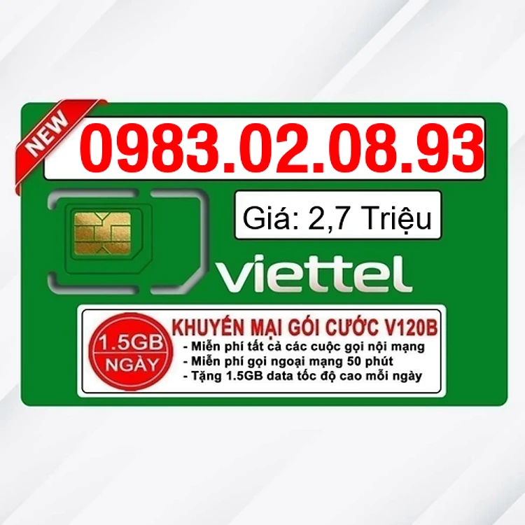 Sim Viettel số đẹp - Hàng chính hãng - 0983.02.08.93