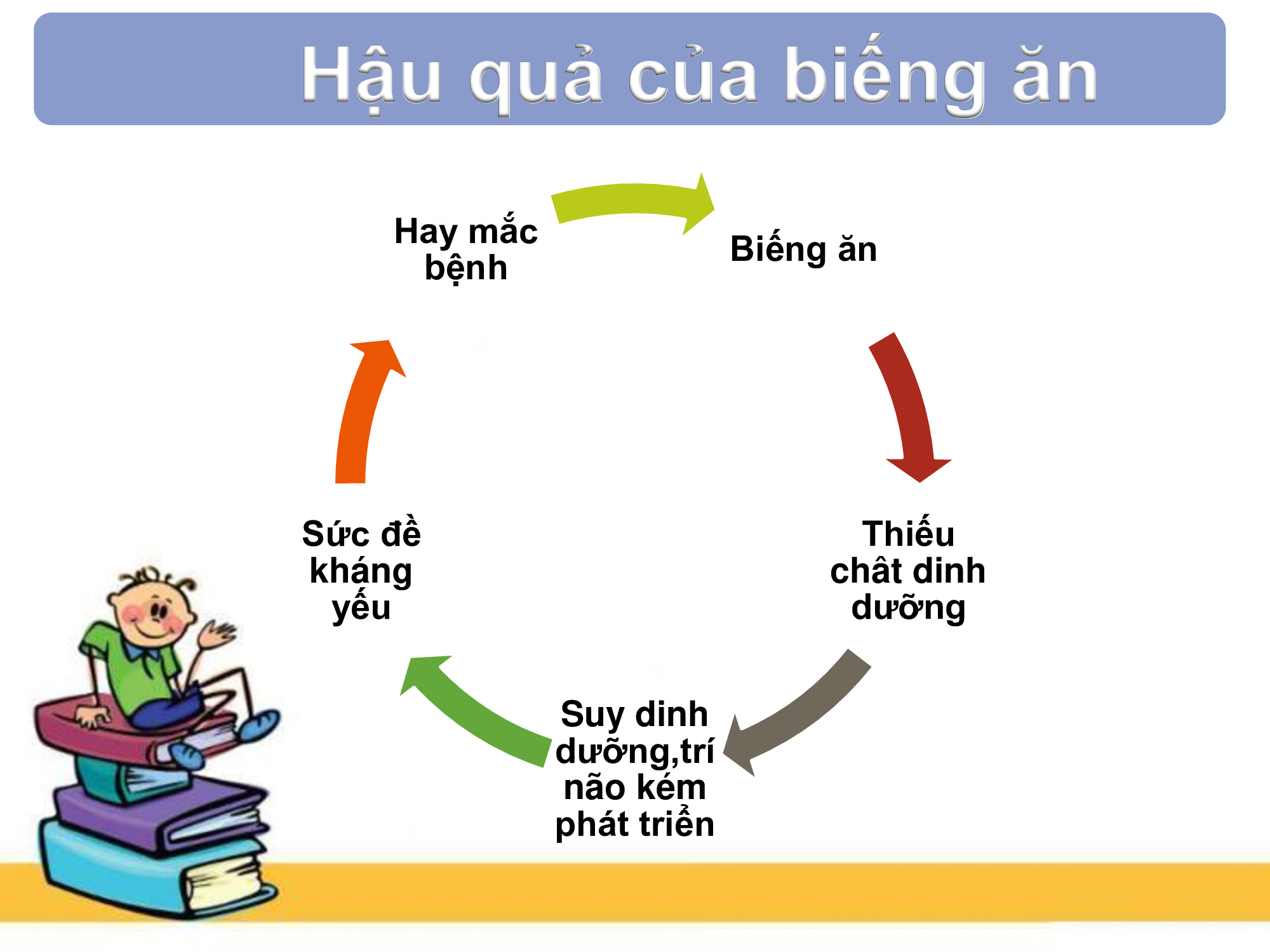 Khi trẻ ăn kém, lười ăn thì dẫn đến à cơ thể trẻ thiếu chất dinh dưỡng à trẻ bị suy dinh dưỡng à sức đề kháng yếu à hay mắc bệnh (có cả bệnh trong cơ quan tiêu hóa) à ảnh hưởng đến khả năng ăn uống và hấp thu dưỡng chất từ thức ăn của trẻ