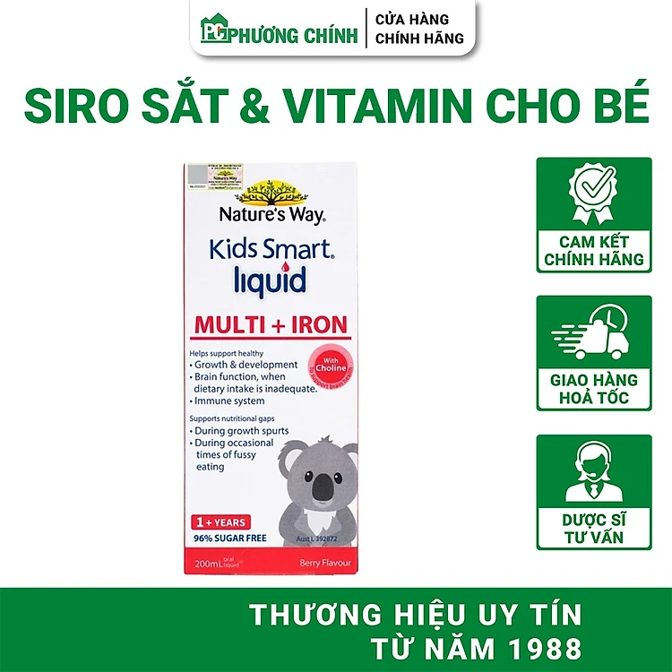 Siro Bổ Sung Sắt & Vitamin Cho Bé Nature's Way Kids Smart Liquid Multi + Iron 200ml