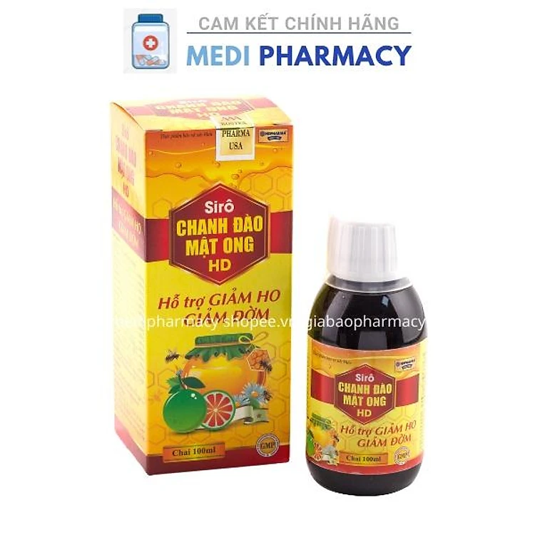 Siro ho chanh đào mật ong HD bổ phế giảm ho, tiêu đơm - Chai đỏ 100ml