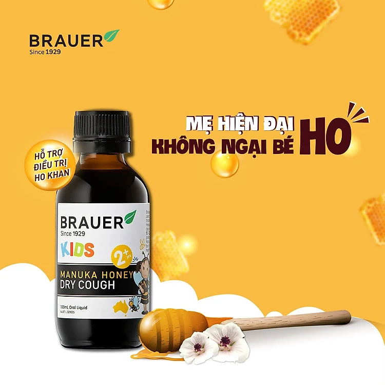 Siro hỗ trợ giảm ho cho trẻ từ 2 tuổi Brauer Manuka Honey Úc giảm ho, ngứa và rát cổ họng, làm mát và dịu cổ họng, tăng sức đề kháng - OZ Slim Store