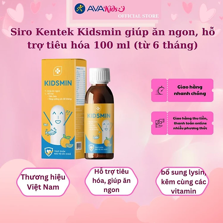 Sản phẩm siro Kentek Kidsmin giúp ăn ngon, hỗ trợ tiêu hóa 100 ml phù hợp sử dụng cho trẻ từ 6 tháng bị suy dinh dưỡng, suy nhược cơ thể, kén ăn hoặc trẻ gầy yếu, mới ốm dậy cần bồi bổ để nâng cao sức khỏe.