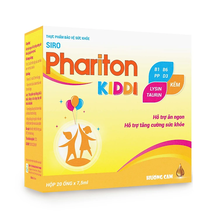 Siro Phariton KIDDI với hương cam vị chua ngọt dễ uống, giúp giúp hỗ trợ ăn ngon, hỗ trợ tăng cường sức khỏe và giúp giảm mệt mỏi