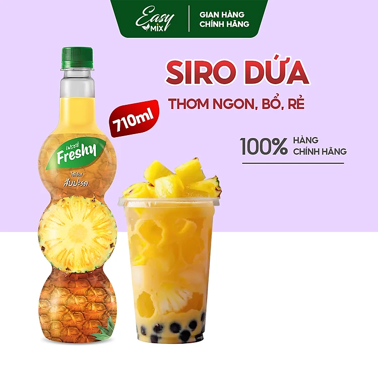 Siro Thơm Freshy Pineapple Syrup Nguyên Liệu Pha Chế Trà Sữa Chai 710ml