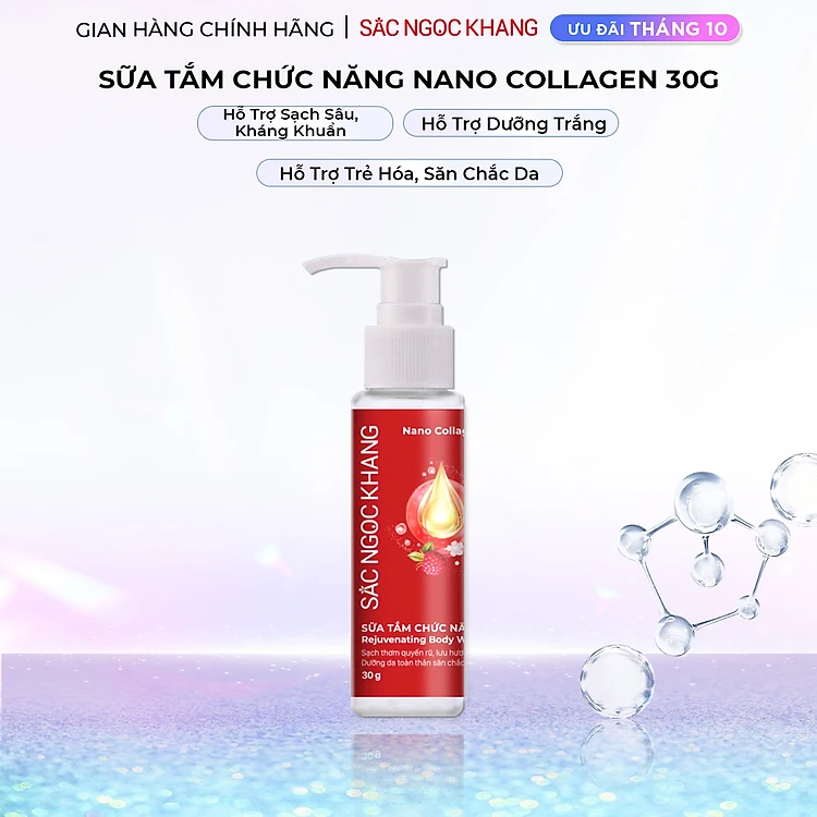 [Size du lịch] Sữa tắm dưỡng thể Nano Collagen Sắc Ngọc Khang giúp da sạch-căng mịn-trắng sáng (Chai 30ml)