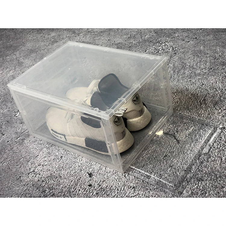 Hộp giày trong suốt có nắp đóng mở nên bạn dễ dàng thấy được những đôi giày trong hộp và giúp bạn dễ dàng khi lấy ra dùng.