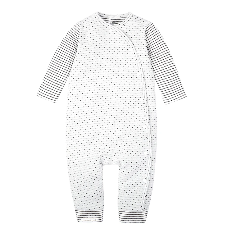 - Sleepsuit Liền Quần Cài Lệch Lullaby DF NH27-19 với chất liệu 100% cotton cao cấp với cách dệt Double Face (2 mặt vải được dệt như nhau) đem lại loại vải độc đáo, mềm và bông xốp, được nhập khẩu từ Thái Lan. Chi tiết cúc cài được nhập khẩu từ Nhật Bản.