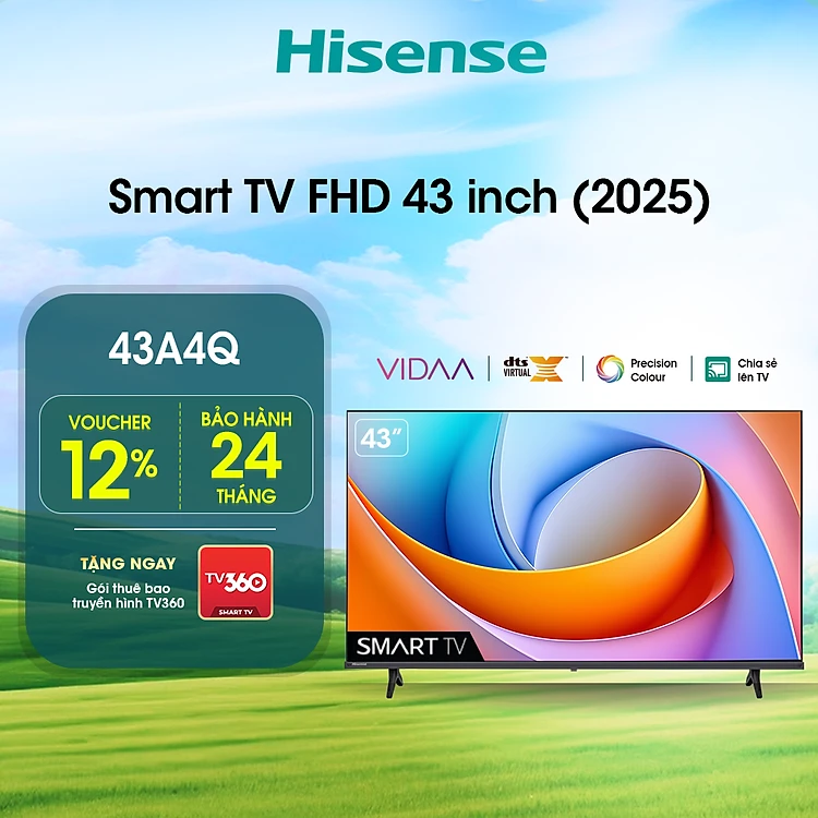 Smart Tivi Hisense 43 inch FHD 43A4Q, Giao hàng toàn quốc, Bảo hành 2 năm - HÀNG CHÍNH HÃNG