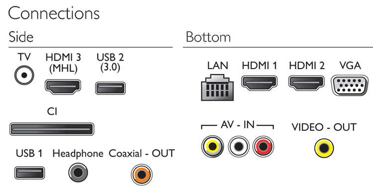 HDMI sử dụng tín hiệu không nén, đảm bảo chất lượng cao nhất từ nguồn đến màn hình. Cùng với Philips Easylink của Philips, bạn chỉ cần duy nhất một thiết bị điều khiển từ xa để thực hiện hầu hết các yêu cầu hoạt động đối với TV, đầu DVD, đĩa blu-ray, hộp giải mã (set top box) hay dàn âm thanh rạp hát tại nhà. Ngoài ra, chỉ cần kết nối bằng cáp VGA và bạn đã sẵn sàng sử dụng Smart Tivi Full HD 43PFT6110S/67 của bạn làm màn hình PC.