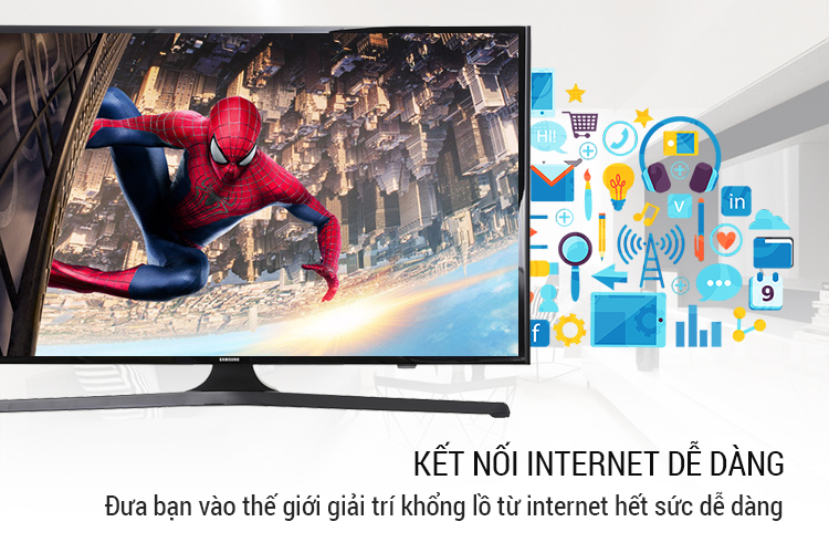 Internet Tivi Samsung UA40J5200 40 inch sẽ đưa bạn vào thế giới giải trí khổng lồ từ internet hết sức dễ dàng thông qua kết nối wifi. Ngoài ra bạn còn có thể kết nối với các thiết bị ngoại vi khác như laptop, điện thoại, usb thông qua cổng USB, HDMI, LAN