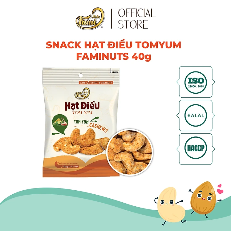 Snack Hạt điều Faminuts Túi 40g - snack hạt điều bể đôi ăn vặt giàu dinh dưỡng