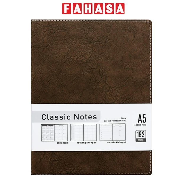 Sổ Bìa Da Cứng Doanh Nhân A5 - 192 Trang 80gsm - The Sun - Màu Nâu