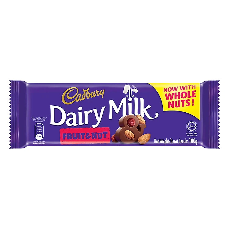 - Sô-Cô-La Trái Cây Và Hạt Cadbury Dairy Milk (100g) ngoài thành phần cacao nguyên chất còn được bổ sung thêm bột sữa, đường, mật ong, hạnh nhân…để làm giảm bớt vị đắng và tăng thêm mùi vị hấp dẫn cũng như hàm lượng dinh dưỡng cho sản phẩm. Chính vì thế nên socola Cadbury giàu chất béo, nhiều calo hơn so với loại socola thường