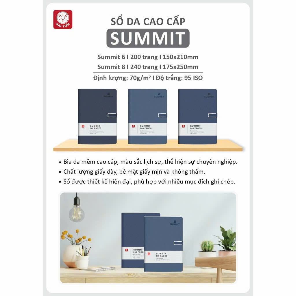Sổ da Hải Tiến 8427 / 8434 - Sổ da kẻ ngang Summit khổ A5 200 trang / B5 240 trang