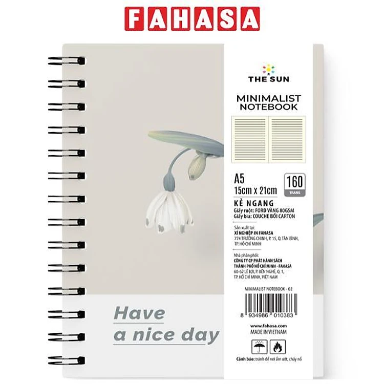 Sổ Lò Xo Bìa Cứng Minimalist A5 - Kẻ Ngang - 160 Trang 80gsm - The Sun 02