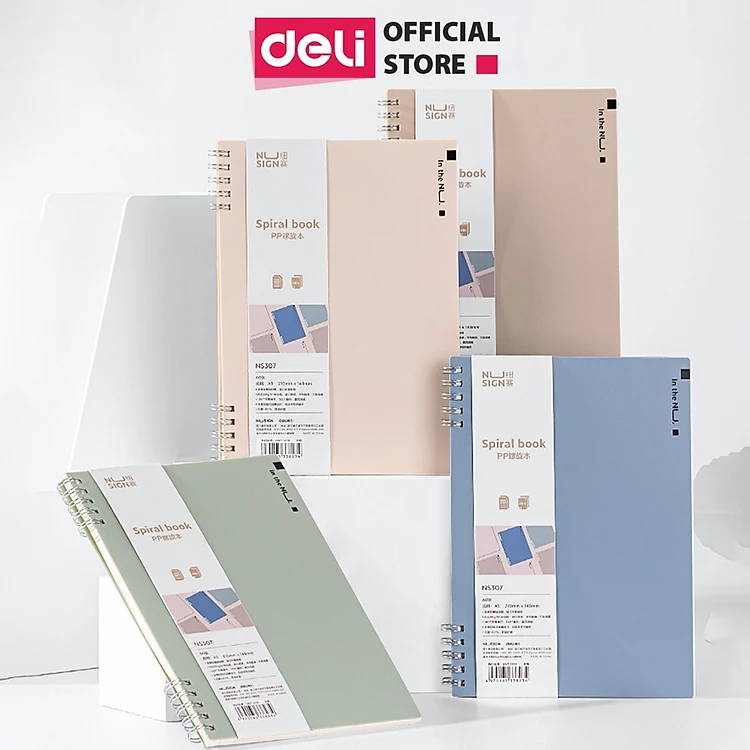 Sổ lò xo gáy xoắn màu pastel A5 120 trang kẻ ngang Deli - Phù hợp làm planner, sử dụng như tập vở học sinh - NS307