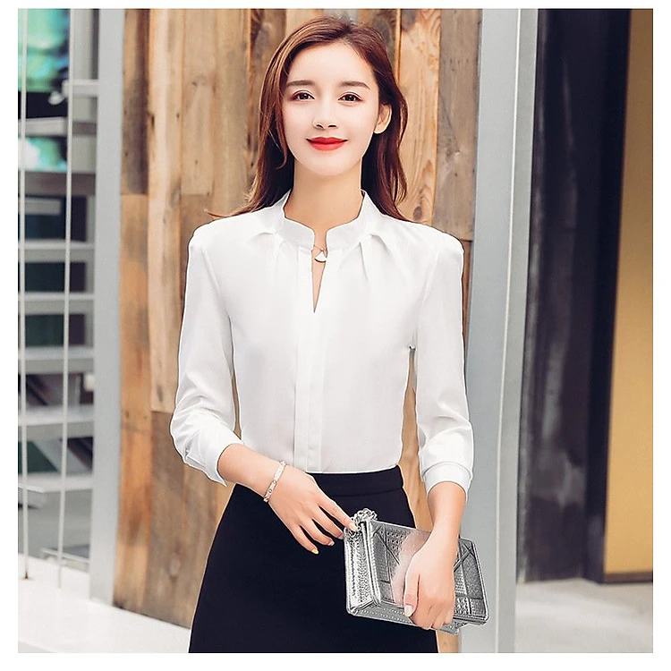 Áo sơ mi nữ cổ tàu vải mịn đẹp, Sơ mi công sở form rộng Haint Boutique SM08