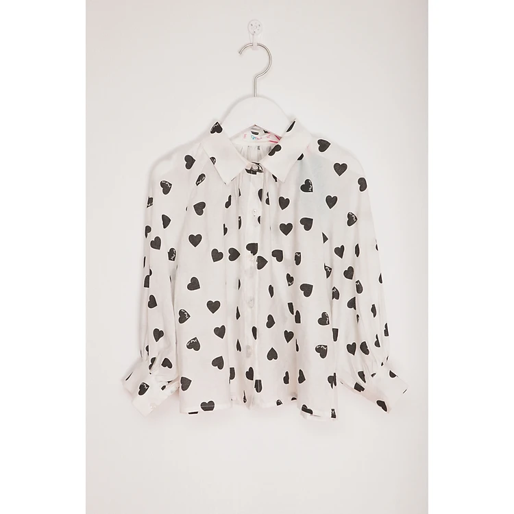 Sơ mi họa tiết trái tim bé gái (4-13 tuổi)