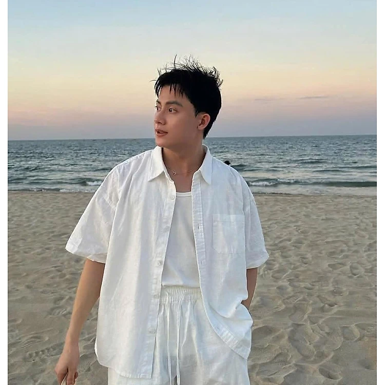 Sơ mi nam ngắn tay trơn cổ bẻ khóa cúc thanh lịch vải sợi tự nhiên Linen mềm mát
