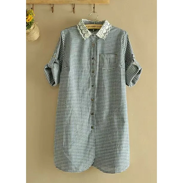 Sơ mi nữ kẻ caro dáng dài Ab05