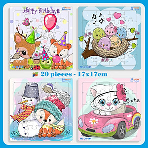 05 bộ tranh xếp hình 20 mảnh size 17x17cm – đồ chơi trí tuệ cho bé từ 2 tuổi – Combo Động vật dễ thương 1