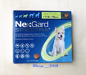 1 hộp NexGard Spectra trị giun, ghẻ, ve rận, viêm da (chó 7,5 - 15kg; hộp 3 viên)